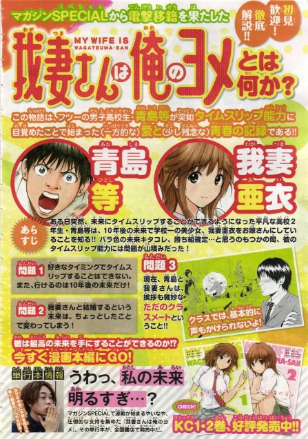 Agora o mangá correrá riscos maiores de cancelamento, pois saiu de uma revista pouco conhecida para a principal revista da editora e a segunda maior do Japão. A pressão será maior, mas não nada exagerado como na Shonen Jump. Desejo toda a sorte pra Wagatsuma-san. Fui com a cara do mangá hahaha. Na imagem acima, no canto direito inferior pode-se ver a capa dos 2 primeiros volumes da série, que são muito binitinhos por sinal.