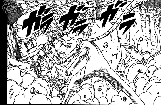O capítulo começa com Obito já destruindo a rocha com a ajuda do poder da estátua atrás dele, pois o corpo dele estava conectado com a estátua, que lhe deu o poder para isso. Lembrando que Obito só conseguiu isso porque o ‘’cara da espiral’’ o ajudou, emprestando seu corpo. O barulho da destruição da rocha acorda Madara, que pergunta se Obito já está indo embora. Obito responde agradecendo a ele por ter salvo sua vida, mas que ele tinha que partir agora. Madara questiona dizendo que Obito está sendo muito precipitado e que ainda era cedo demais para agradecê-lo.