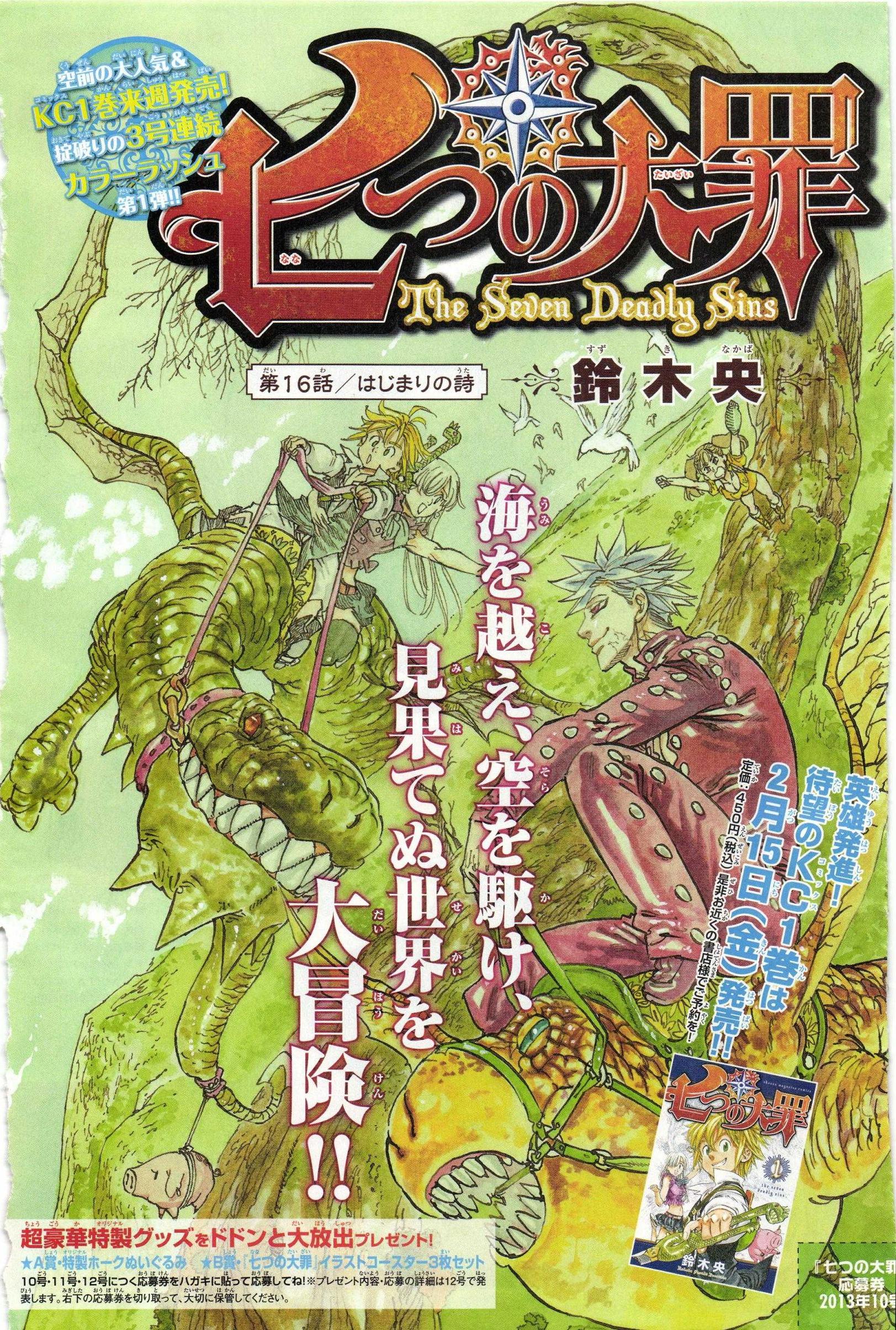 Outro título que recebeu página colorida nessa edição foi um dos mangás que mais tenho gostado de ler da Magazine, Nanatsu no Taizai. Que já teve anunciada outra página colorida para a próxima Issue, ou seja, o mangá realmente se tornou muito popular entre os leitores. Mas só confirmaremos isso nas próximas semanas, que é quando o volume #1 da série estará a venda. Torço muito para que seja um sucesso nas vendas.