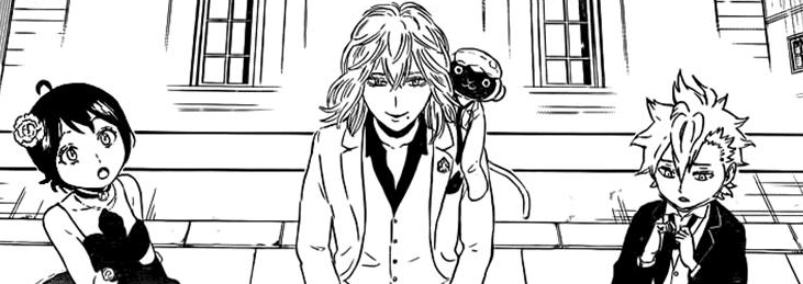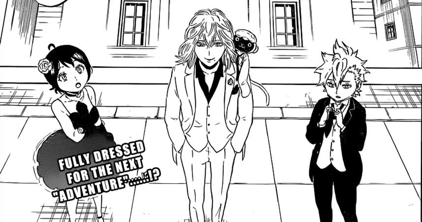 O capítulo começa com Haiji, Chitose e Lise e o macaco ❤ chegando no leilão. Reparem que bonitinho o Haiji tentando arrumar a gravata.