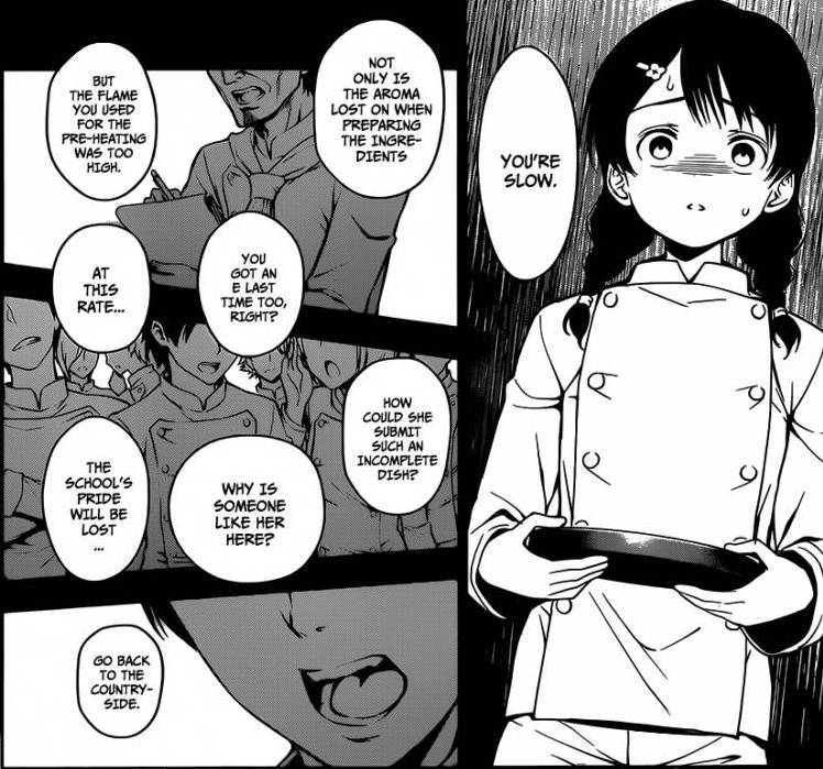 Antes dos chefs provarem, Megumi começa a lembrar das suas falhas anteriores com todos dizendo que ela é lerda e que o lugar dela não é ali. Que ela deveria voltar para o interior de onde veio.