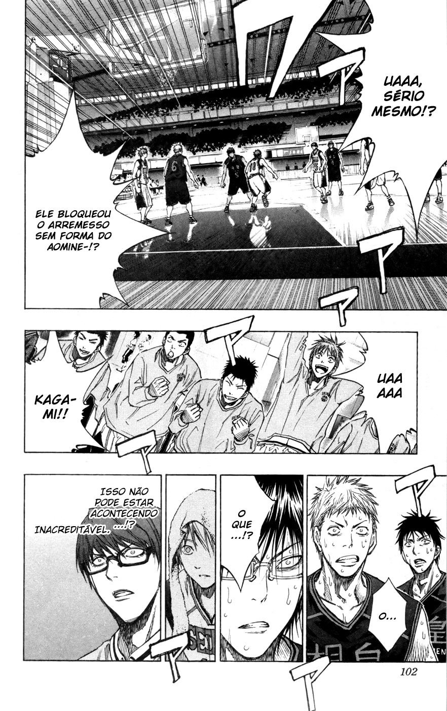 E o jogo finalmente parece que está começando a esquentar, com o Aominecchi jogando sério e o Kagamicchi ficando sério. Praticamente ninguém estava acreditando no que estava acontecendo, afinal de contas, era o “ás” da geração dos milagres que estava sendo parado.