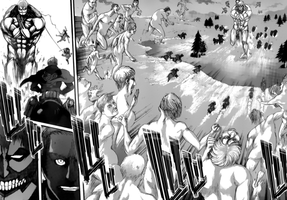 Mesmo com a confirmação da mangaspoiler de que a imagem é falsa ainda tenho esperança de que seja verdadeira, e que venha a sair em um capitulo mais próximo. Não porque quero que eles se transformem e titã, mas sim porque essa arte tá muito boa pra ser falsa, difícil de acreditar que é falsa.