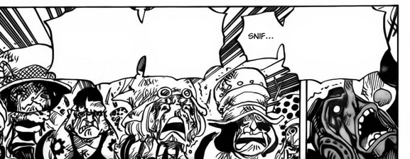 Penso que o que eu mais gostei no capítulo foi toda a sensação de revolução, de tornar as coisas boas novamente. Da chama da esperança se acendendo nos cidadãos. Eu achei todo esse clima SENSACIONAL. Outra questão que me chamou atenção foi a emoção dos Tontatta ao verem que o Usopp tinha dado um jeito de fazer o plano SOP funcionar. Todos eles emocionados… Foi uma coisa linda! Realmente arrepiei. MESMO. E o engraçado é que já faz alguns capítulos que eles declararam sua situação, sua tristeza, sua comoção como um todo. Porém, eu acabei me apegando tanto a essas pequenas criaturas e o choro deles foi tão lindo, tão real, tão verdadeiro, que eu não tive como não ficar arrepiada. Deve ser um dos agradecimentos mais legais de se fazer!