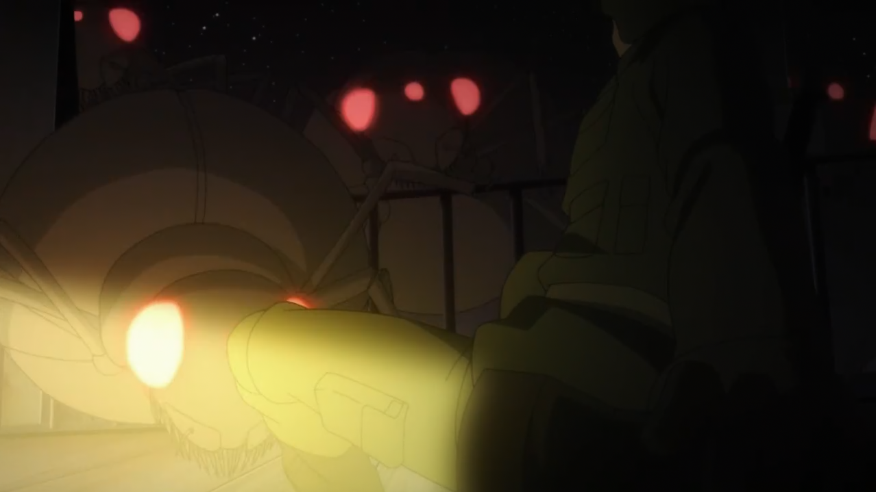 Para prevenir isso, Seitenshi ordenou Rentaro a formar um adjuvante e o nomeou como líder. Um adjuvante é um sistema de esquadrão em que uma equipe de seguranças trabalha com as forças armadas. Isso ajudaria a atrasar os Gastreas o máximo possível durante estes 3 dias dando tempo para concluírem o novo Monólito. Falando nisso, porque cargas d’água a infeliz da Seitenshi já não fez antes mais um Monólito pra cada um que já existe?! Ficariam sempre duplas, com um na frente e outro atrás. Isso evitaria ataques como esse, mas parece que a mulher, que usa um chapéu praiano brega e fora de moda até pra dormir e tomar banho, nunca pensou nisso antes, haja paciência!! Se fosse tão difícil construir um não estariam fazendo outro correndo em 9 dias, então nem me venha com desculpas, minha filha!