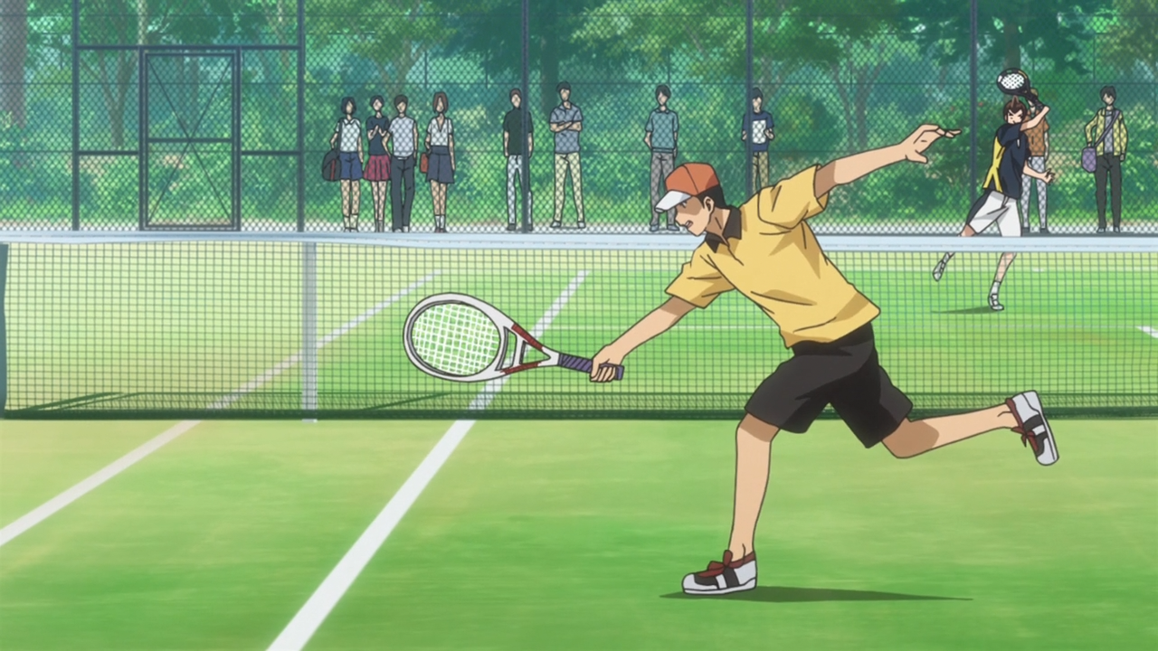 Eiichi participou do campeonato Otowa de Tênis, e pela primeira vez conseguiu vencer uma partida. Ele acabou parando na terceira rodada, mas já conseguiu um grande progresso. O outro campeonato que ele disputou acabou caindo na terceira rodada também. Em meio ao time-skip de alguns meses que o episódio todo mostrou de maneira muito boa, temos a chegada novamente do tão aguardado torneio no qual Eiichi havia estreado antes. Acredito muito que dessa vez ele conseguirá passar da primeira fase. Mas como ele ainda é um novato e tem uma posição ruim no rank geral, com certeza acabará pegando algum cabeça de chave nas primeiras rodadas.