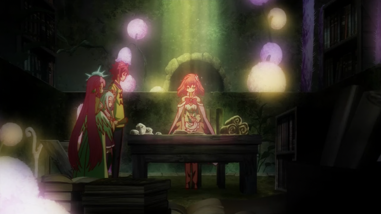 O antigo rei achou uma forma de contornar isso. Ele escreveu tudo num livro e o trancou numa sala secreta. A chave ficou com a Steph, para que ela a desse ao próximo e realmente confiável rei, que no caso foram os Brancos. Ele acreditou que alguém conseguiria vir e salvar os Imanity, por isso arriscou tudo e fez aquele campeonato pelo título de rei. Ele apostou apenas terras pouco importantes para depois facilmente recuperá-las. Ele foi um rei brilhante e muito inteligente, que apenas passava a imagem de louco. Muito bacana ver o Sora reconhecendo isso. A Steph ficou em prantos cheia de emoção, hehe.