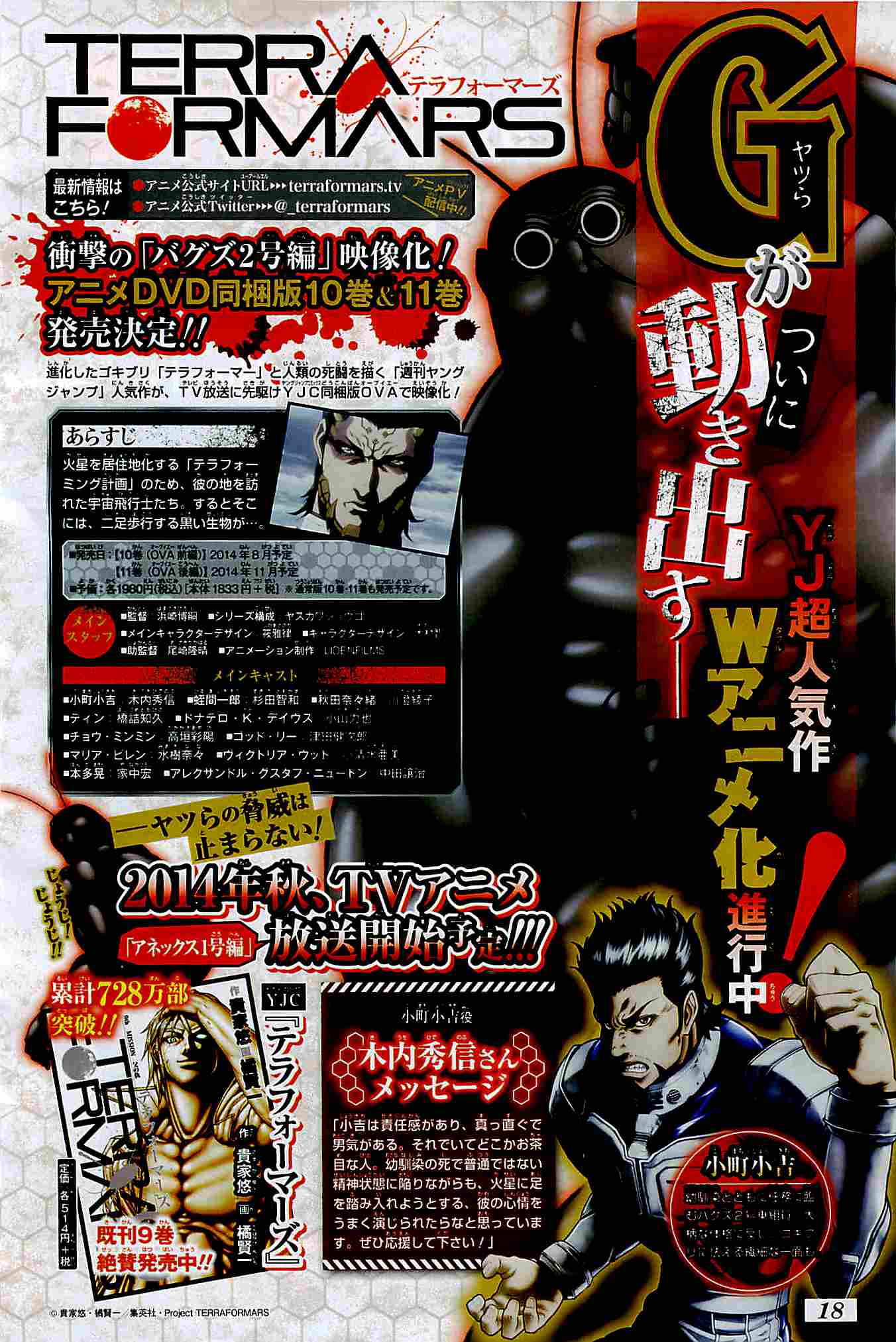 Páginas coloridas mostrando um pouco mais do anime de Terra Formars